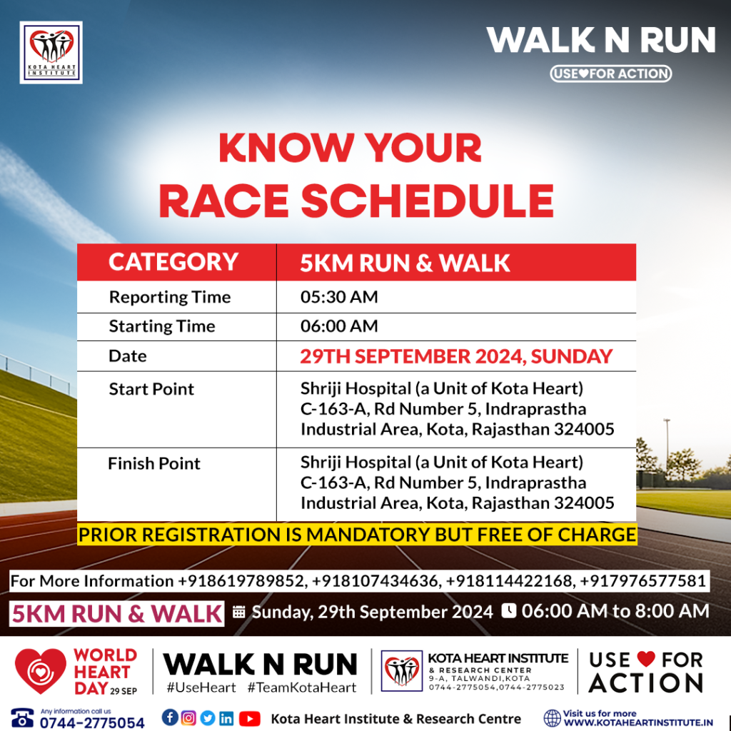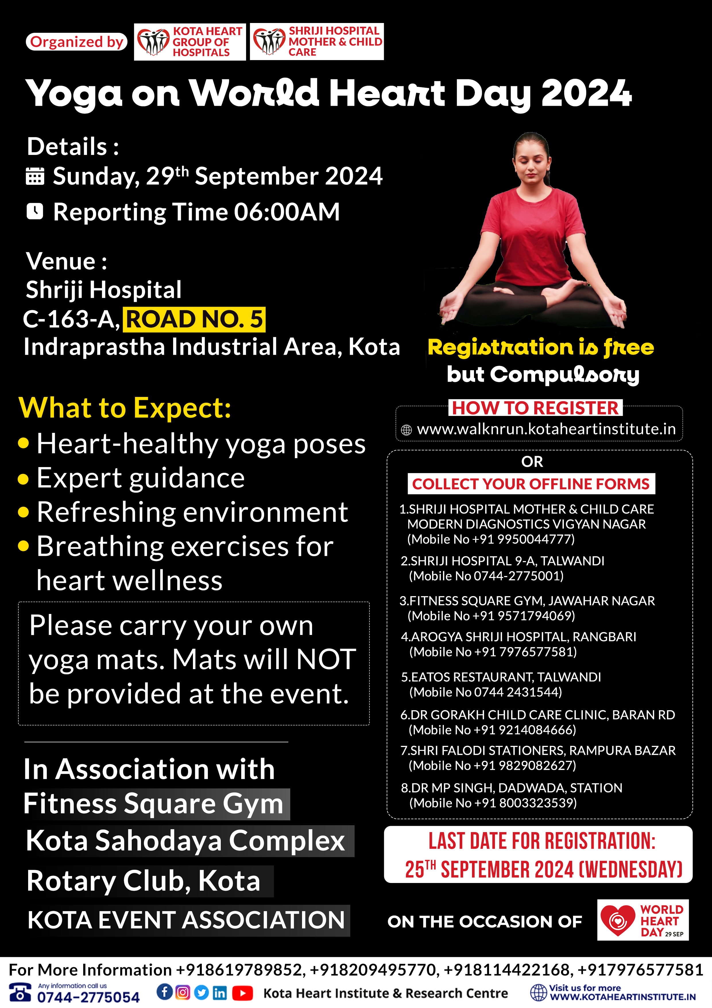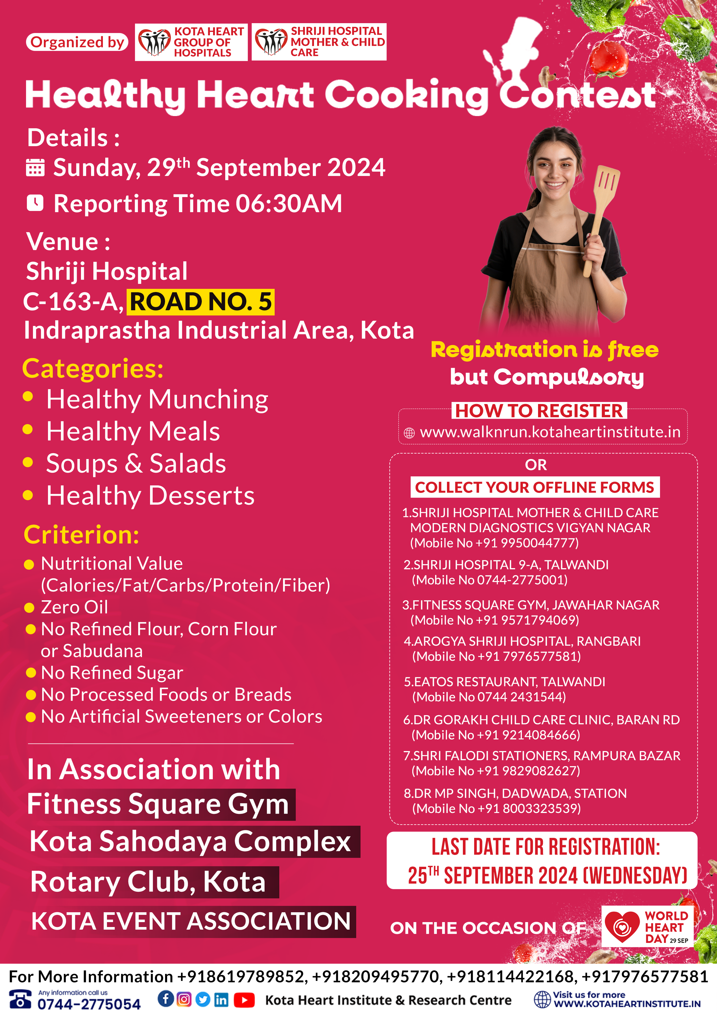 We Invite You to Join 5 KM Walk N Run,Yoga, Healthy Heart Cooking Contest for a Healthier Heart!